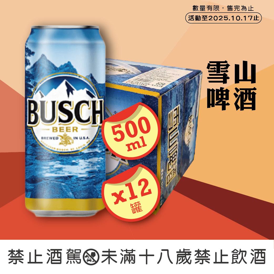 傳遞著清新活力及戶外休閒的形象的雪山為美國原裝進口之高品質啤酒,誕生於1955年,雪山啤酒(Busch Beer)清冽、涼爽,宛如讓人沉浸於山中溪流。讓人煥然一新的滑潤口感搭配著簡單餘韻,更是雪山對人們不變的堅持。